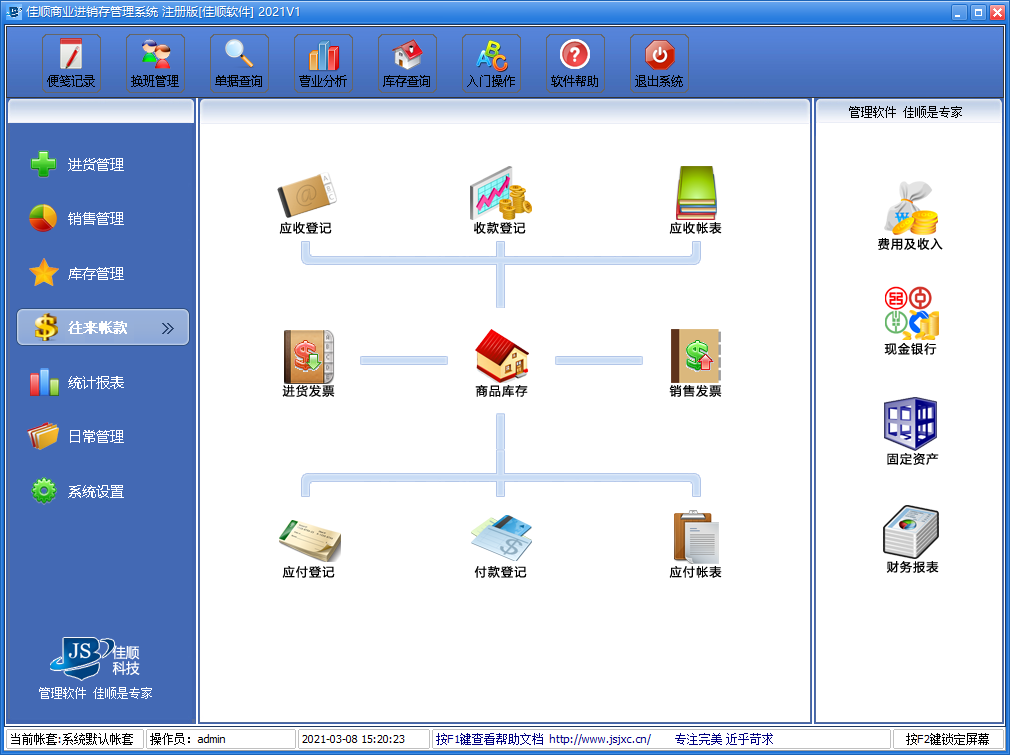 适用于中小企业,商场,超市,销售门店等;用于商业采购、销售、报表、打印、财务等管理,实现信息化管理。