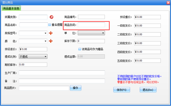 系统设置——商品管理,添加录入商品信息的时候,商品条码位置录入好数字条码